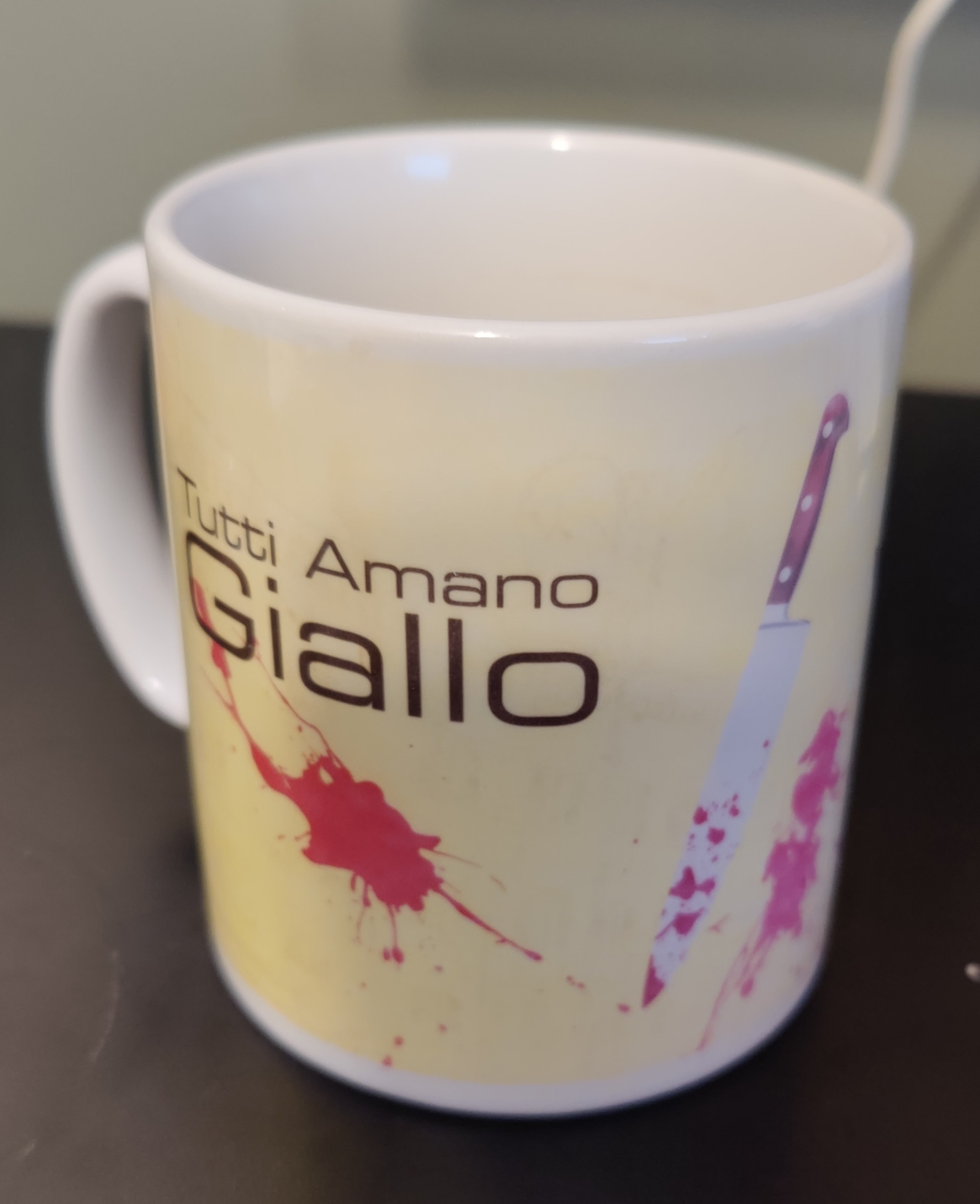 At some point the wee one is going to ask why my coffee mug has blood and a knife on it.